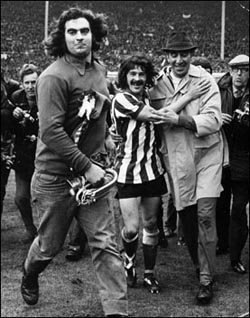 It was now believable that Sunderland could win. Leeds built-up attack after attack, but Sunderland’s rear four were commanding. Every clearance was cheered. For some the tension was unbearable and they left their places and paced about under the stands, at home some people had to leave their television sets. Everyone except the unfortunate folk from Leeds wanted the final whistle to blow and when it did there was one of the greatest roars ever at Wembley. Bob Stokoe, his short white mackintosh billowing, raced across to Montgomery. Danny Blanchflower wrote that the game was the most emotional he had known. The Sunday Express said Wembley had never seen such ecstasy. The nation enthused. Back in Sunderland many people ran out; there was impromptu dancing; cars appeared, drivers just sounding their horns. The centre of the town became impassable. That night was just about the most joyous the old town had known. Don Revie, who took defeat well, said that Montgomery's save was the best he had seen, and that Sunderland’s strength and enthusiasm in the first half had unsettled his side. Leeds United: Harvey, Reaney, Cherry, Bremner, Madeley, Hunter, Lorimer, Clarke, Jones, Giles, Gray (Yorath) Sunderland: Montgomery, Malone, Guthrie, Horswill, Pitt, Halom, Hughes, Kerr, Watson, Porterfield, Tueart Referee: Ken Burns, Stourbridge __________________________ Finale